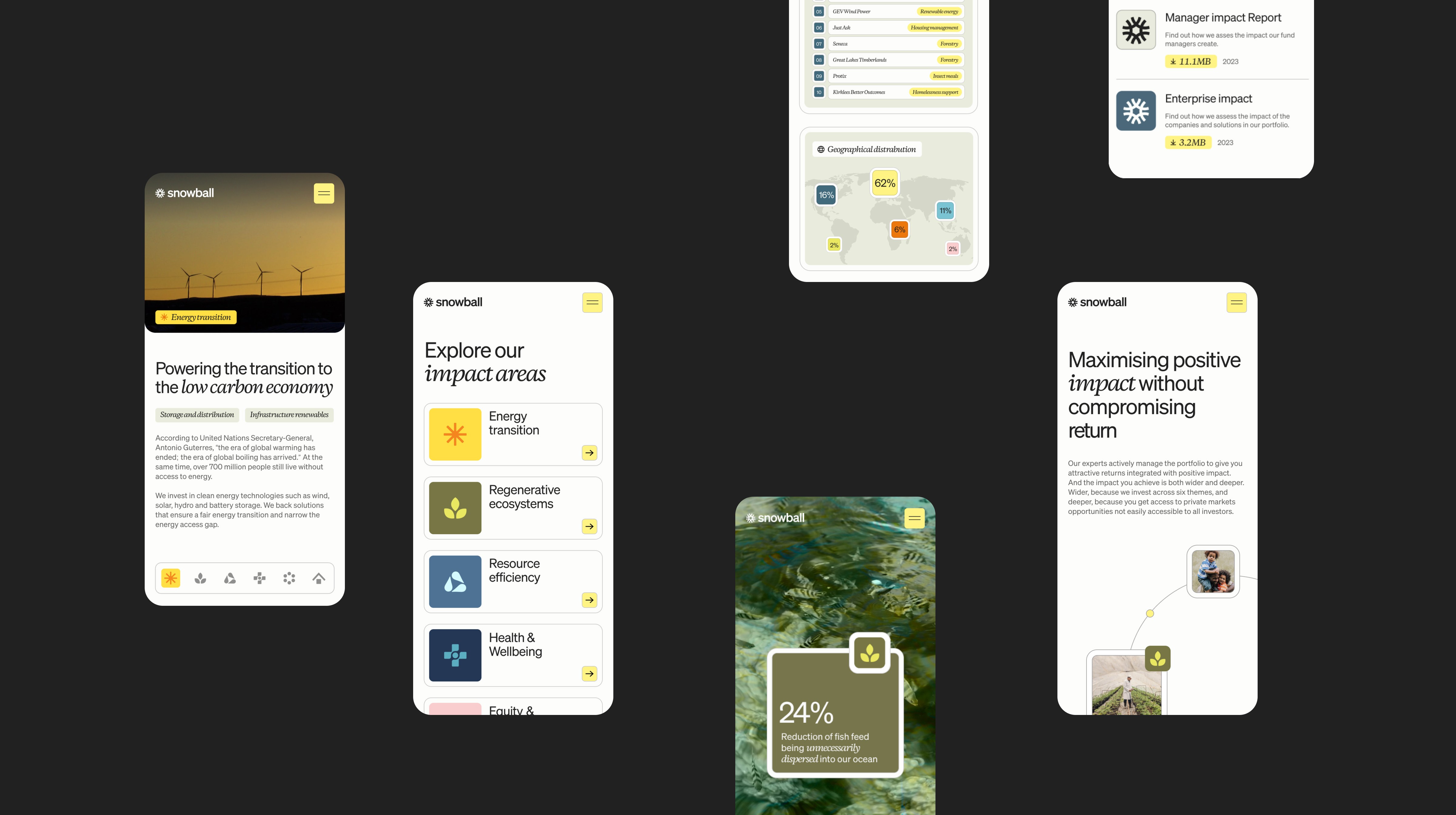 The website design focused on clean, accessible messaging that made impact investment feel understandable. True to their commitment to transparency, Snowball's portfolio formed a central part of the new site - through impact case studies and statistics, users can see just where their money goes.